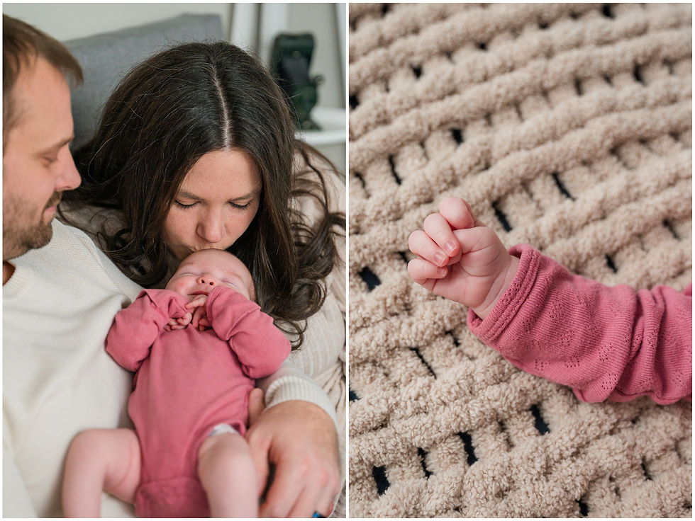 I ended 2025 with a newborn session, and began 2026 with... a newborn session! This is the adorable baby Riley and she was an absolute doll to photograph! She was the perfect little Christmas present for her momma and daddy who both just absolutely adore her. A few weeks later during her session, there were moments when Riley absolutely did not want to miss out on the fun and stayed bright eyed, but there were other moments when her slumber could not be disturbed by photos, haha! I personally love the mix of awake and sleeping baby photos and am so happy with the mix we captured here. Take a peek at some of my favorites from her newborn portraits below.